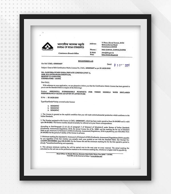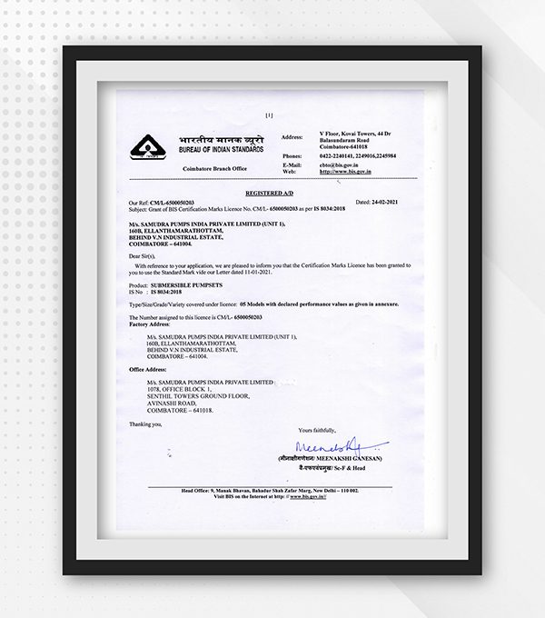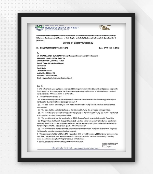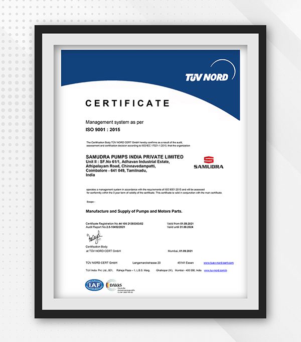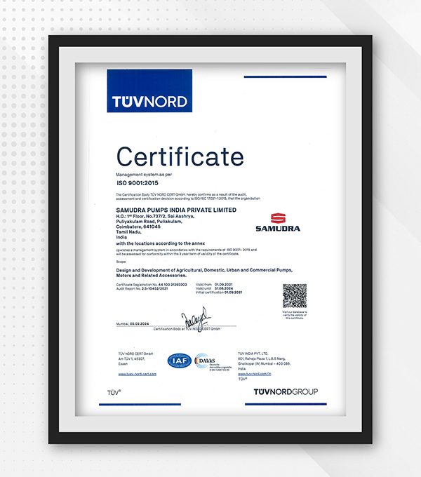Tel : +91 422 498 2255 | Email : info@samudrapumps.com
